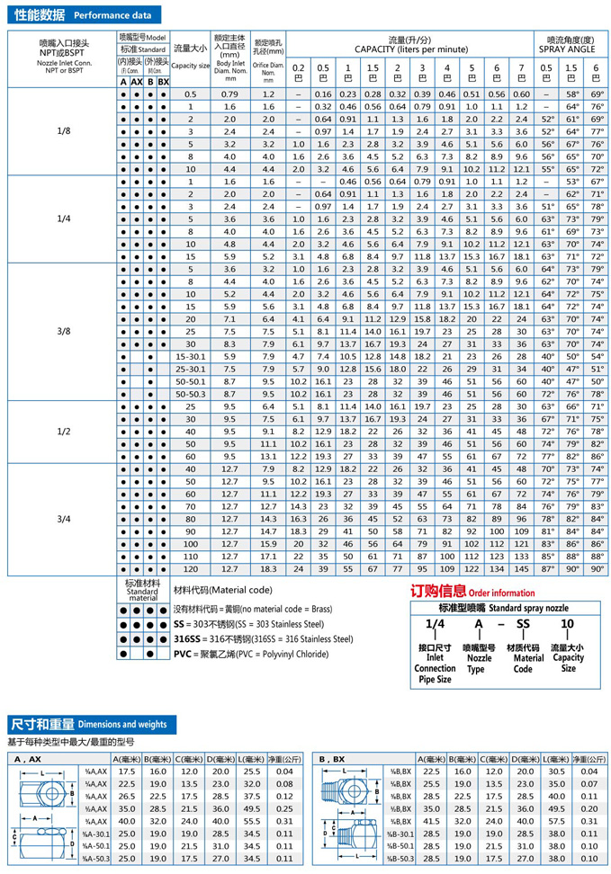 AX-W和BX-W系列廣角扇形噴嘴具有與A-W和B-W系列同樣的性能,外加延長壽命的坡底設計優(yōu)點,以減少旋流腔中液體旋流的“鉆削效應”。